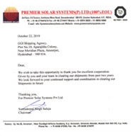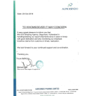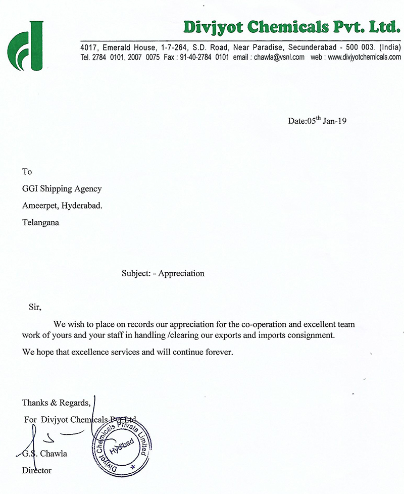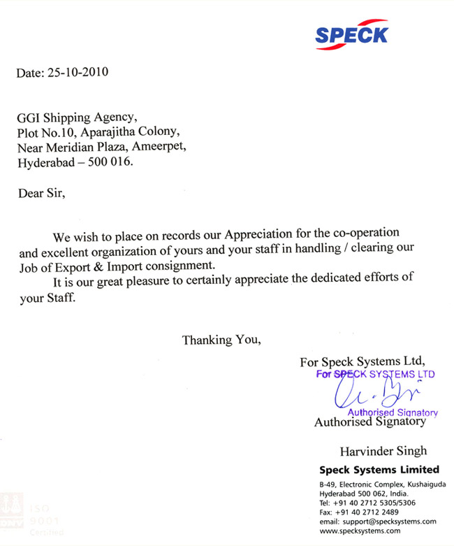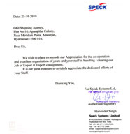 We wish to place on records our appreciation for the co-operation and excellent team work of yours and your staff in handling /clearing our exports and imports consignment. We hope that excellence services and will continue forever.
